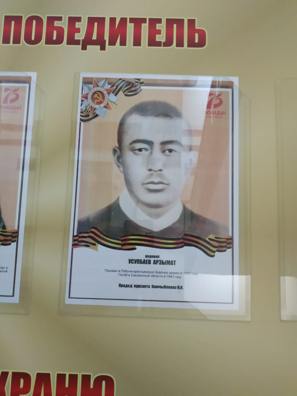 Улуу-атамекендик согуштун 75-жылдыгына карата, чоң атам боюнча бир аз жазып кетүүнү туура кɵрдүм. Ар бир үй-булɵɵдɵ ɵзүнүн баатыры болот, биздин үй-бүлɵɵдɵ - бул чоң атам болгон! Каргашалуу согушта душманга каршы эл-жер үчүн, келечек урпактар үчүн ɵз жанын айабай согушкан чоң атам биз үчүн чыныгы баатыр. Чоң атам каза болгон убакта мен бир жашта кана...