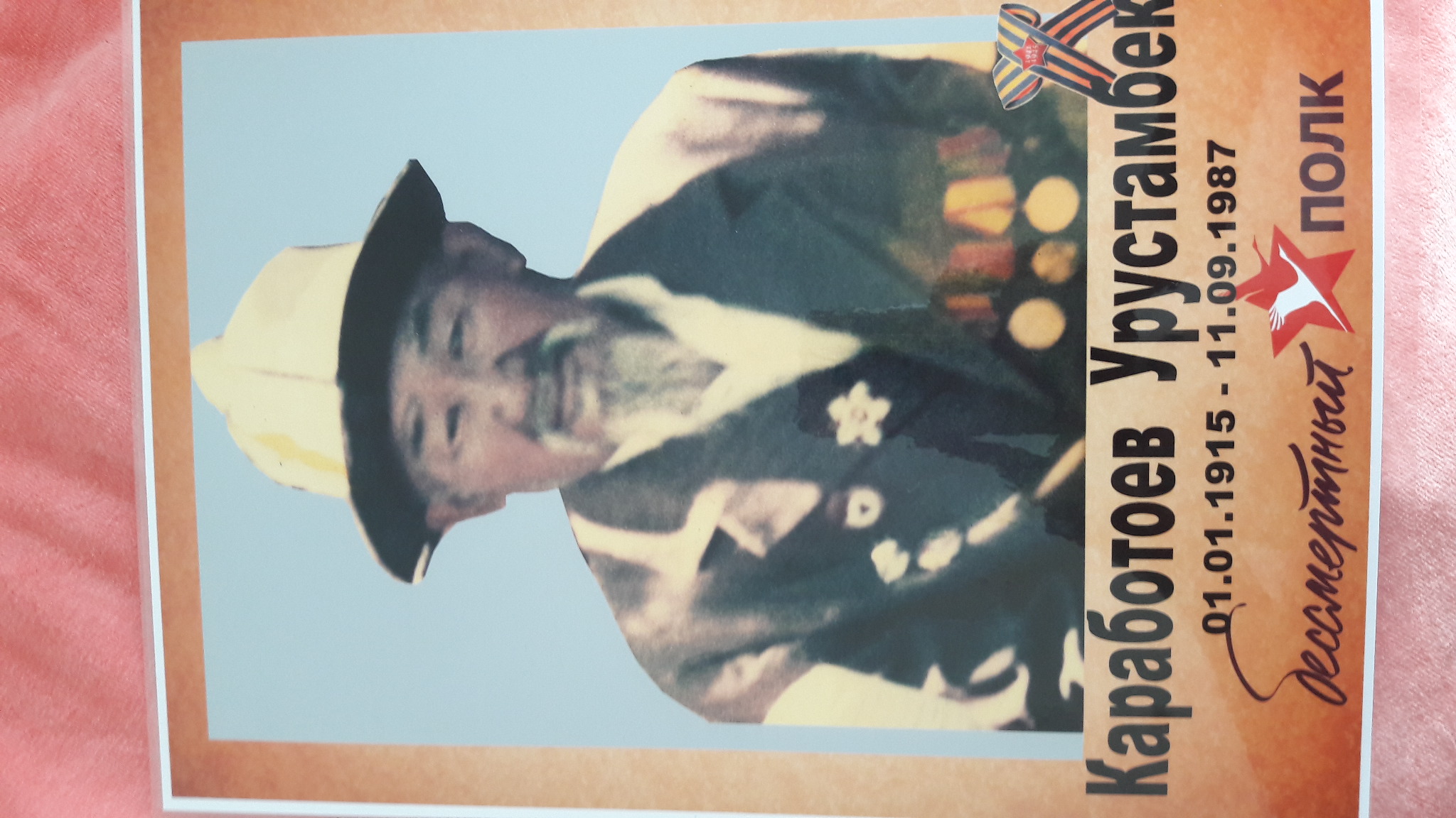 Райымбек Каработоев был в возрасте 45 лет когда ушел на войну. В районе он был милиционером и кроме родного кыргызского свободно владел русскийм и немецком языке. После войны он был орестован из-за знание немецкого но после смерти Сталина был освобожден и пришел на родину, Кыргызский ССР. Прожил до 1981-года и умер в возрасте 84 лет.