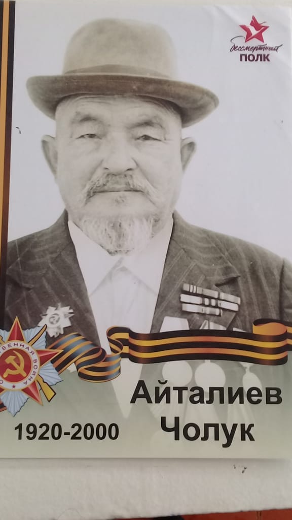 В 1942 году его забирают на фронт. Во Фрунзе его подготавливают 2 месяца на пулеметный расчет . После этого он попадает в Смоленский фронт и его назначают командиром пулеметного расчета. После нескольких боев их перебрасывают в Белорусский фронт. В 1943 году после тяжёлых боев он получает ранение в ногу и его комиссуют. И он возвращается домой в родное село ...