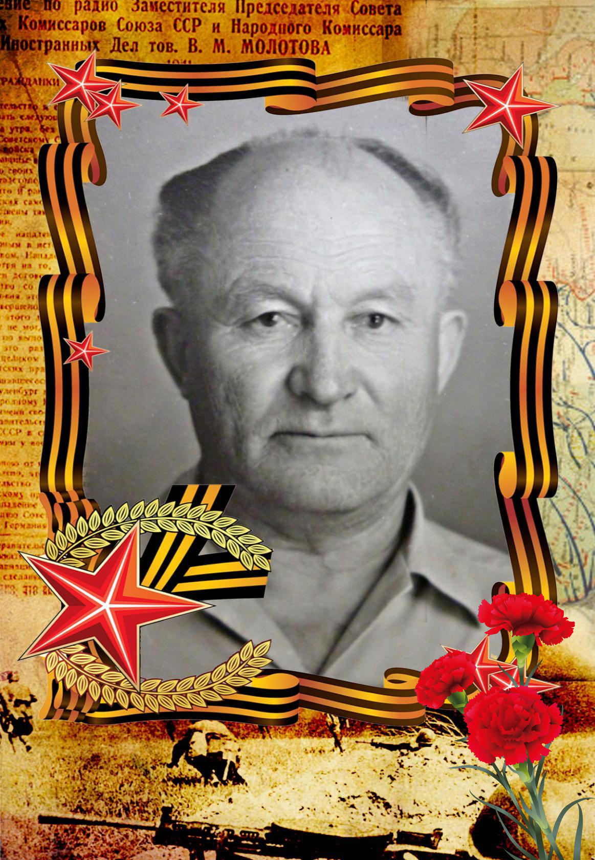 Учился в Омском педагогическом Университете, из Омска же и призвали на фронт.Служил связистом в части СЭГ 2386 1277 зенап 48 дивизии,принимал участие в Курской битве, освобождал Варшаву. Несколько раз был ранен. Награды: Орден Отечественной войны 2 степени, медаль "За боевые заслуги", медаль "За отвагу", медаль "За освобождение Варшавы", медаль "За победу н...