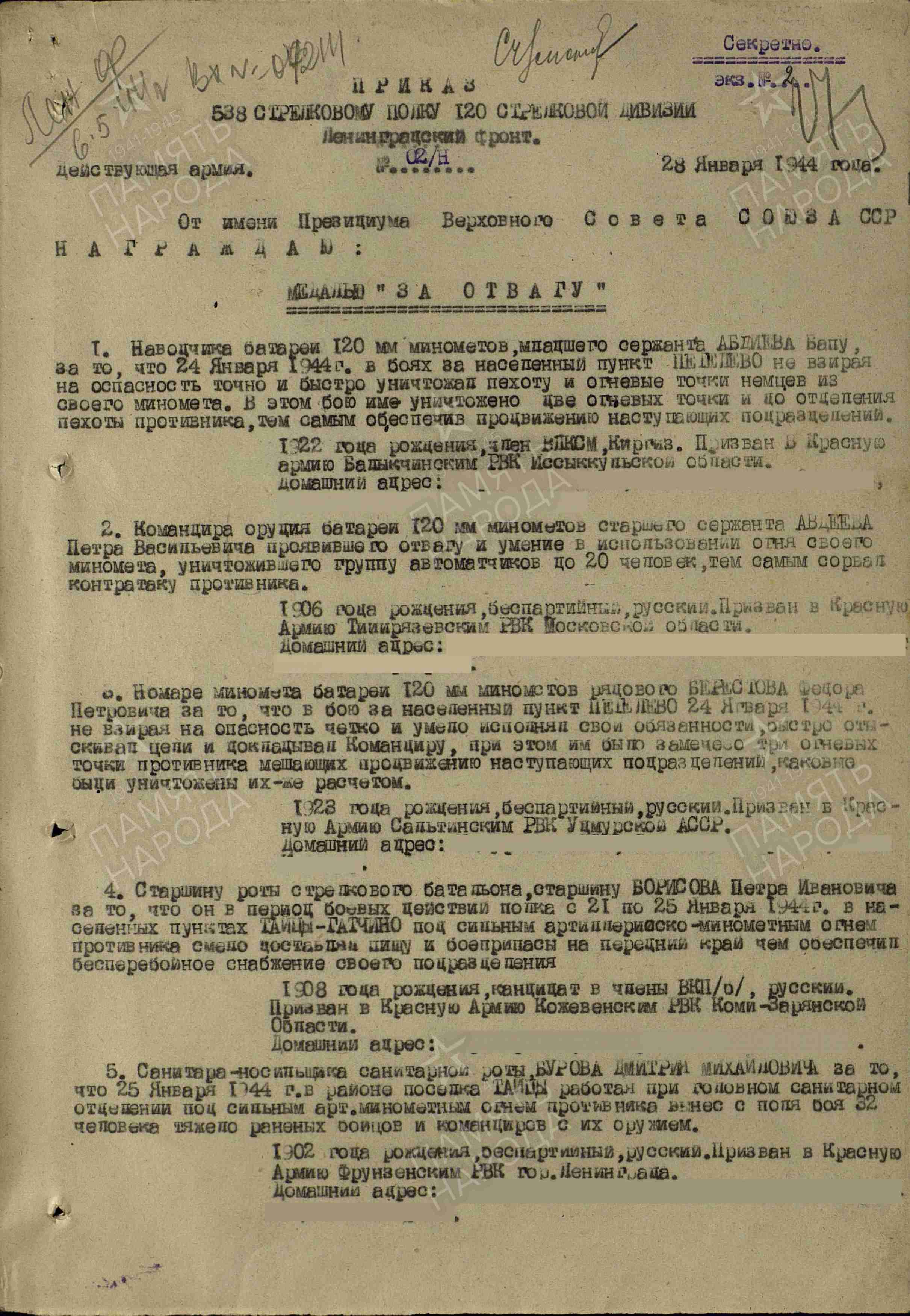 538 Стрелковый полк 120 Стрелковой дивизии. Ленинградский фронт