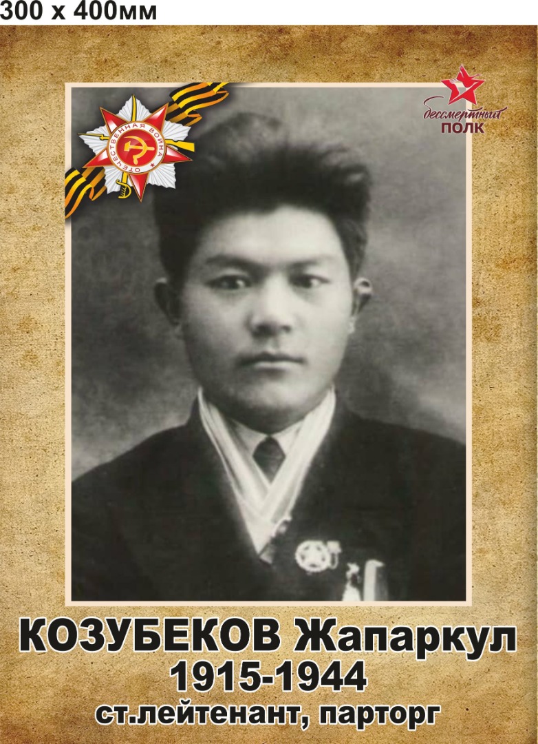 Козубеков Жапаркул служил в 290 стрелковой дивизии. Был старшим лейтенантом, парторгом.Был награждён орденами и медалями. Погиб 8 марта в 1944 году Белорусская ССР, Могилёвская область, Чауском районе.