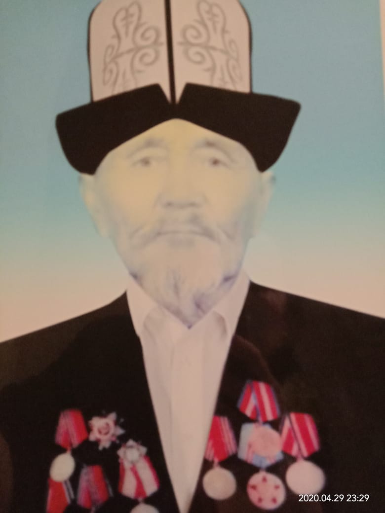 1941-жылы согушка аттанып, Германия менен болгон согушка катышкан,андан кийин Япон жана Кытай согуштарына катышып 1946-жылы он колунан жаракат алып оз мекенине кайтып келген. Ардактуу эс алууга чыкканга чейин Куршаб совхозунда эмгектенген. 6 кыз жана 1 уулду татыктуу тарбиялап,коптогон неберелердин ардактуу чон атасы болгон. 2007-жылы,83 жаш курагында дуйнод...