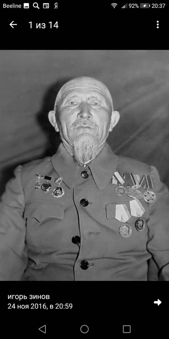 Ушел на фронт в 1941 году в возрасте 18 лет. Служил в разведроте. Прошел всю войну и дошел до Берлина в 1945 году. Имеет много правительственных наград. Умер 23 февраля 1998 года.