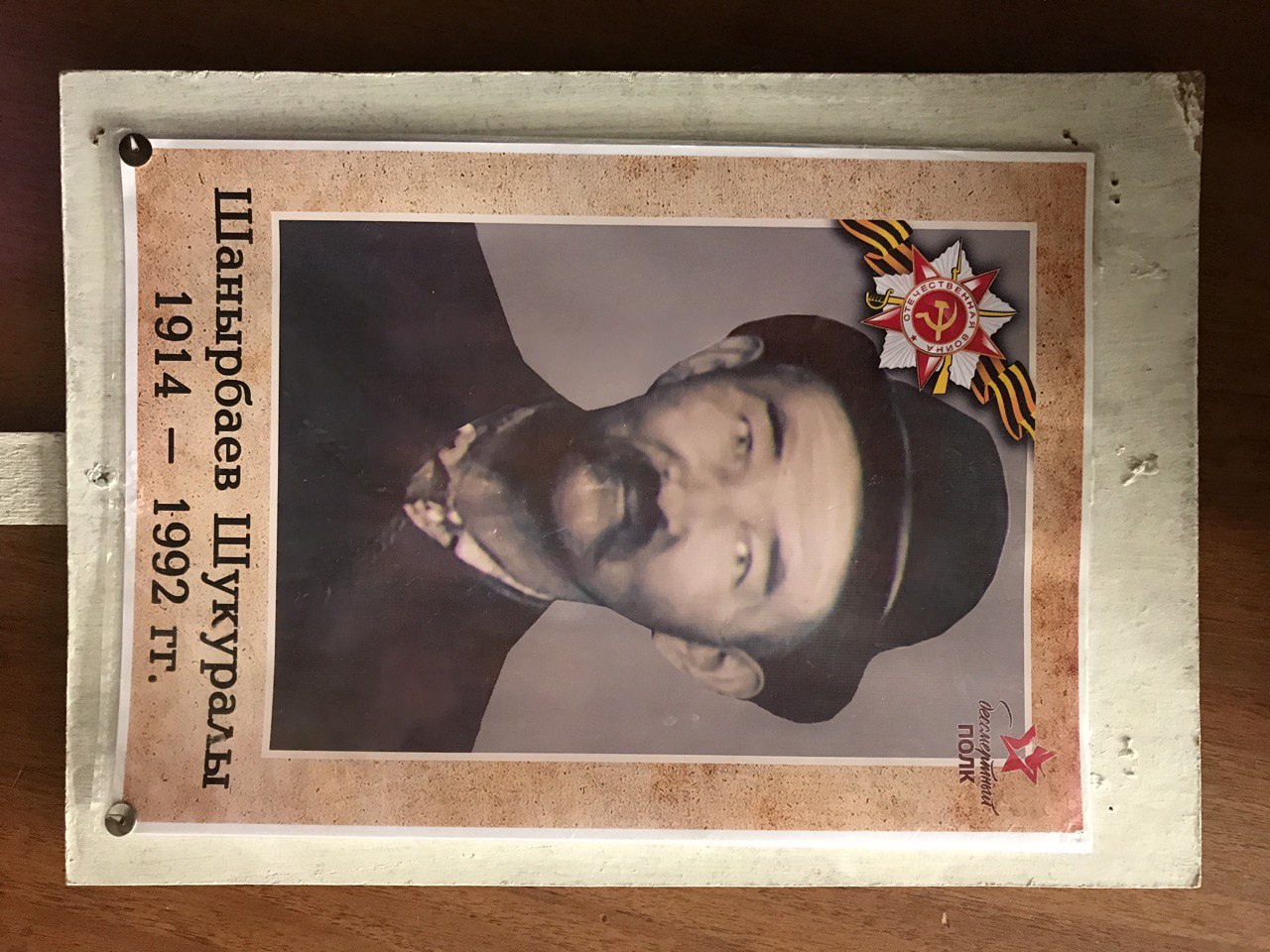 Шанырбаев Шүкүралы уехал на фронт в 1942 году. Воевал на Украине. Был в плену. Вернулся в 1949 году. Был вознагражден орденом “Отечественной войны” и медалью “За отвагу”. В Ысык-Кульской области Джети-Огузком районе в селе Саруу имеется монумент героев Великой Отечественной Войны, где увековечен Шанырбаев Шүкүралы.