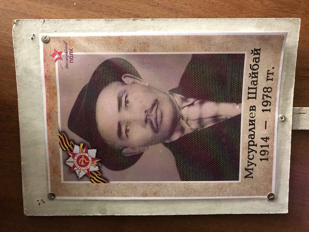 Мусуралиев Шайбай отправили на фронт 1942 году в Белоруссию. По прибытию на фронт в дороге заболел. Военная врачебная комиссия его комиссовала и отправила обратно в Киргизию.В Джалал-Абадской области занимался уничтожением басмачей и организовывал работу для нужд фронта до 1947 года.