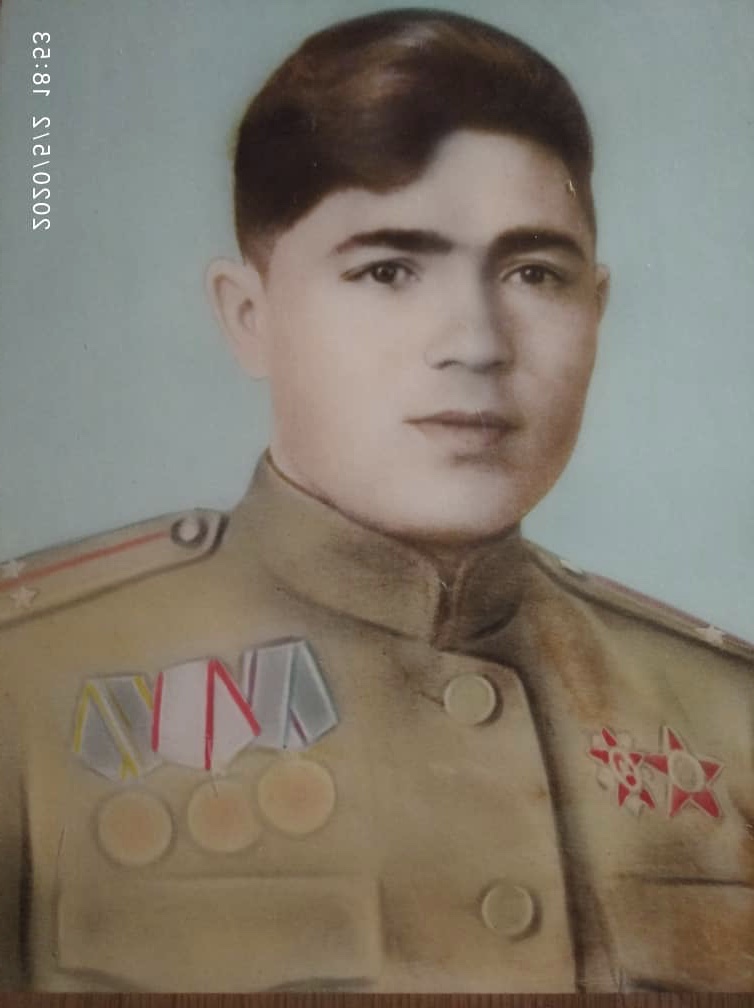 Призван в декабре 1942 года с г.Киргизия Ошская область с.Араван на фронт.Служил в 1Украинском флоте, в Венгрии г.Секешфехервар .Тяжело ранен в марте 1945 года в боях.По выздоровлению вернулся домой в сентябре 1945года.
