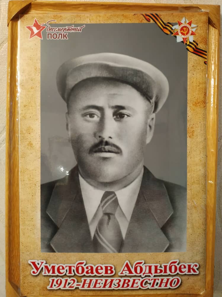 Уметбаев Абдыбек 1912 года рождения, из села Тепке, Тюпского района, Иссыкульской области. В 17 лет уже стал Председателем колхоза в селе Тепке. В 1941 году в сентябре добровольно подался в Военкомат , в итоге был отправлен на Украину, где был назначен стрелком . Откуда и прислал своё последнее письмо семье, весной 1942 года. Больше о нем нет никакой информ...